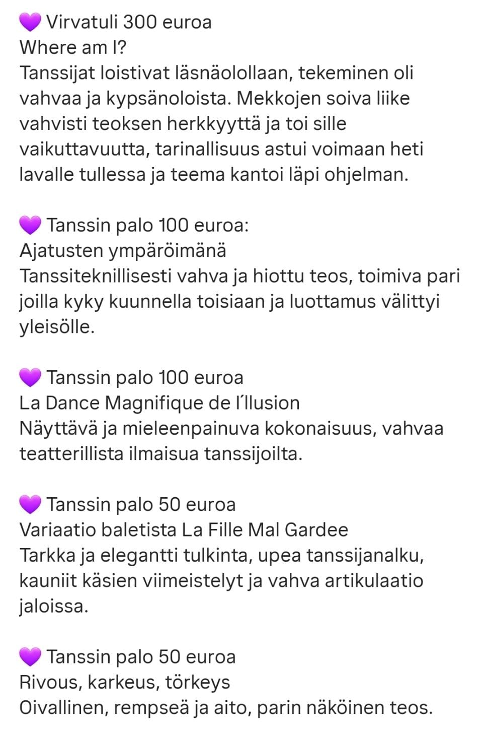 Virvatulistipendi myönnetään tanssijalle / ryhmälle, joka raadin